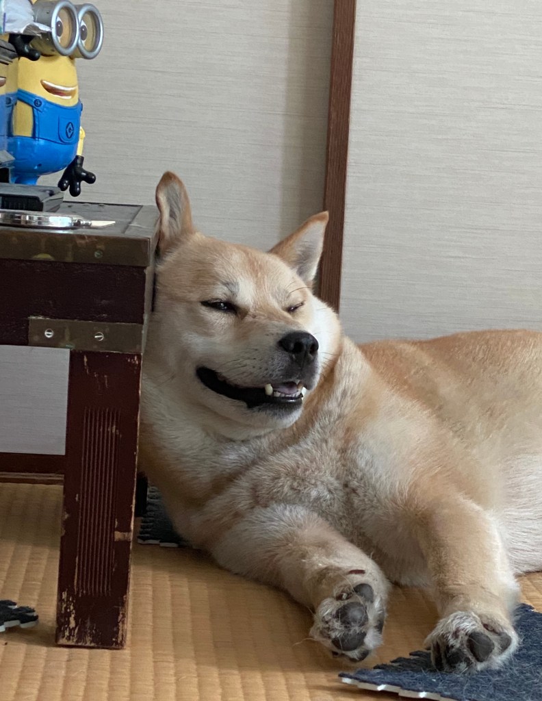 So imagine being a Hokkaido mix with two layers of fur being brought to Kyoto from a mountainous region north of Osaka where there is to a degree plenty of shade and crisp clear mountain water. To then being kept inside with open windows, fans and ice cubes/chips in your water to simulate the cold crisp water and walking in the evening when its cooler and very early morning before the intense heat hits. This is what our first summer in Kyoto together looks like and it isn’t pretty nor always glamorous!