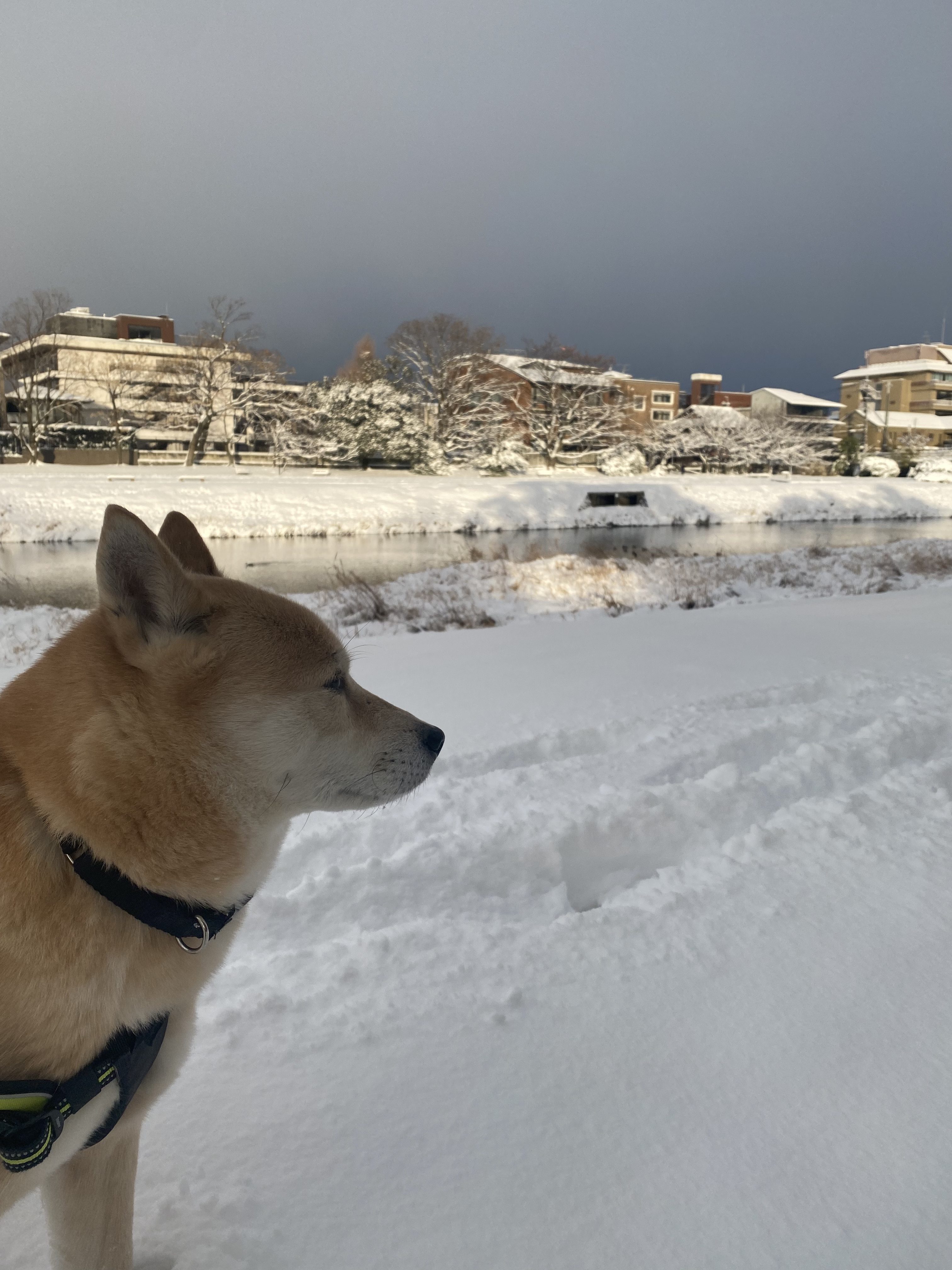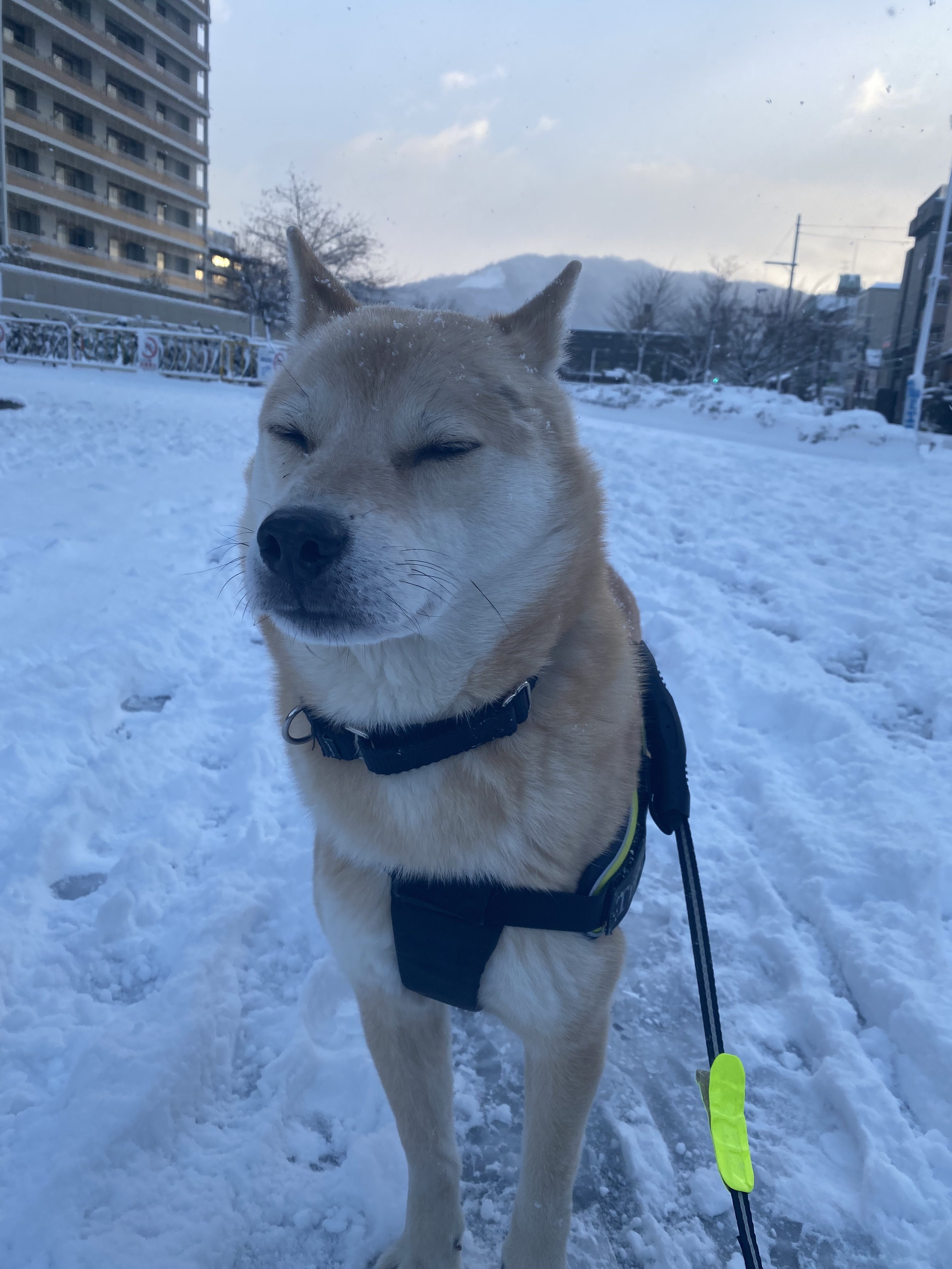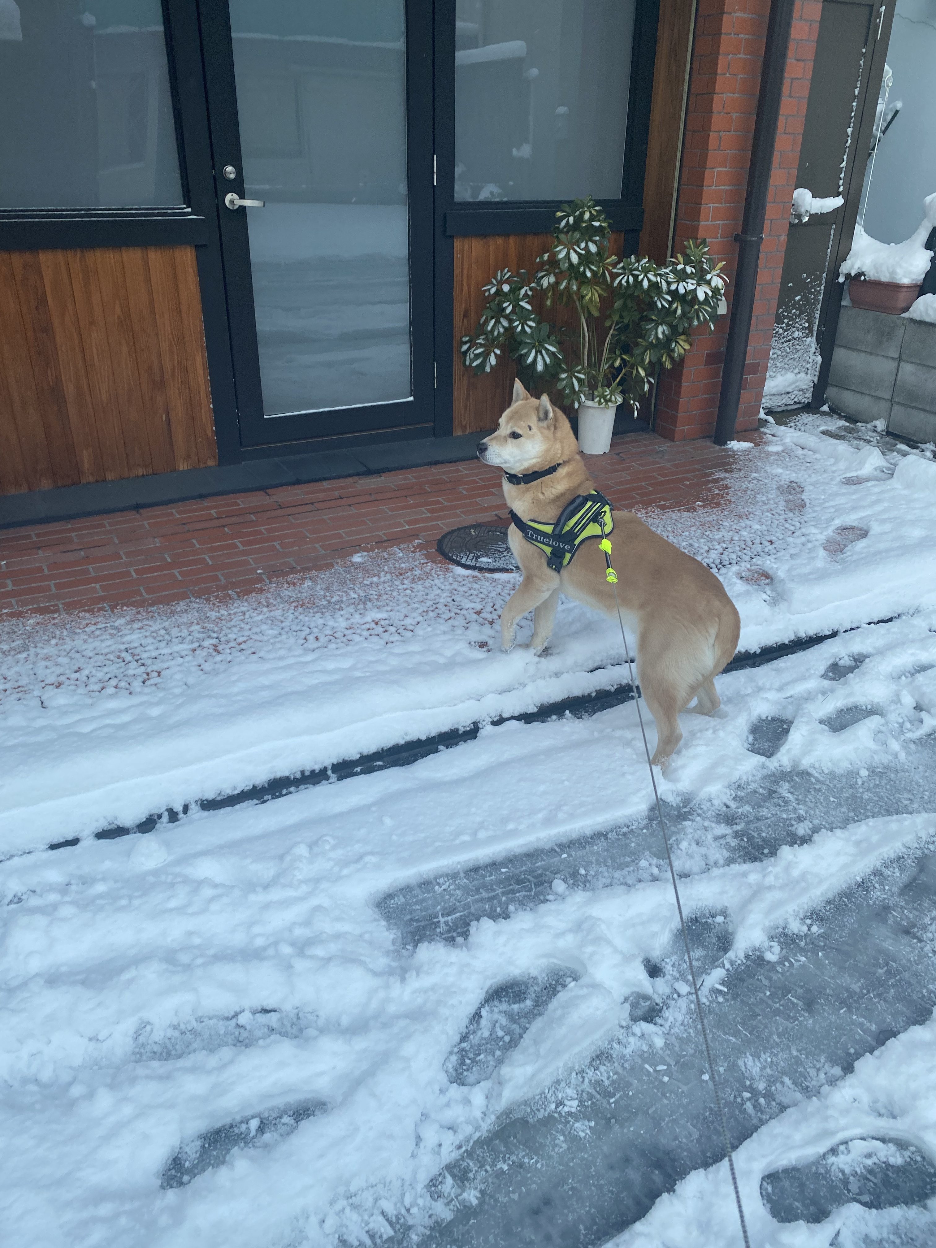 As it snowed heavily and Sasuke being Hokkaido, I thought he might like to have a walk in the snow early the next morning. I wasn’t sure because last time he had adamantly refused but this time I was hopeful as it was actual snow!